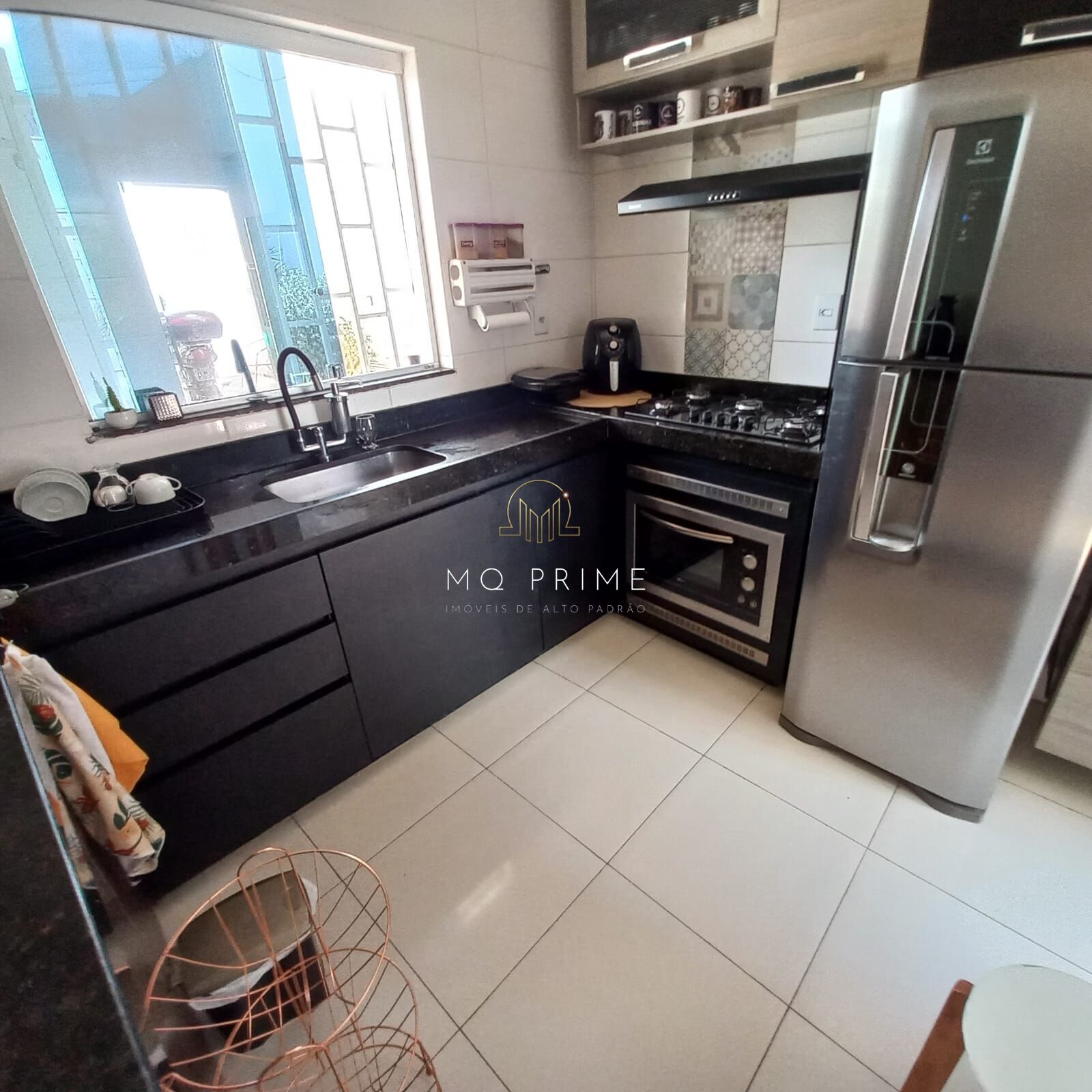 Cozinha Gourmet com bancada e pia em granito e churrasqueira,