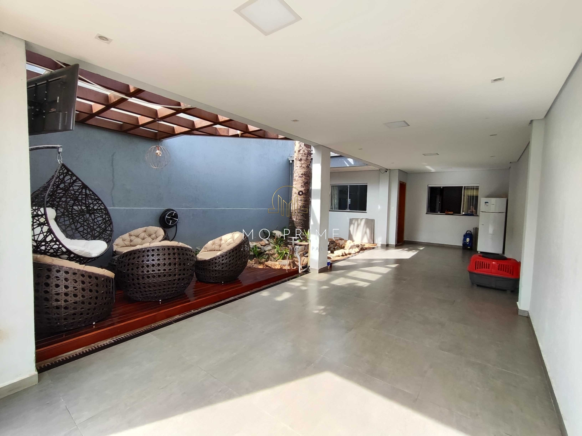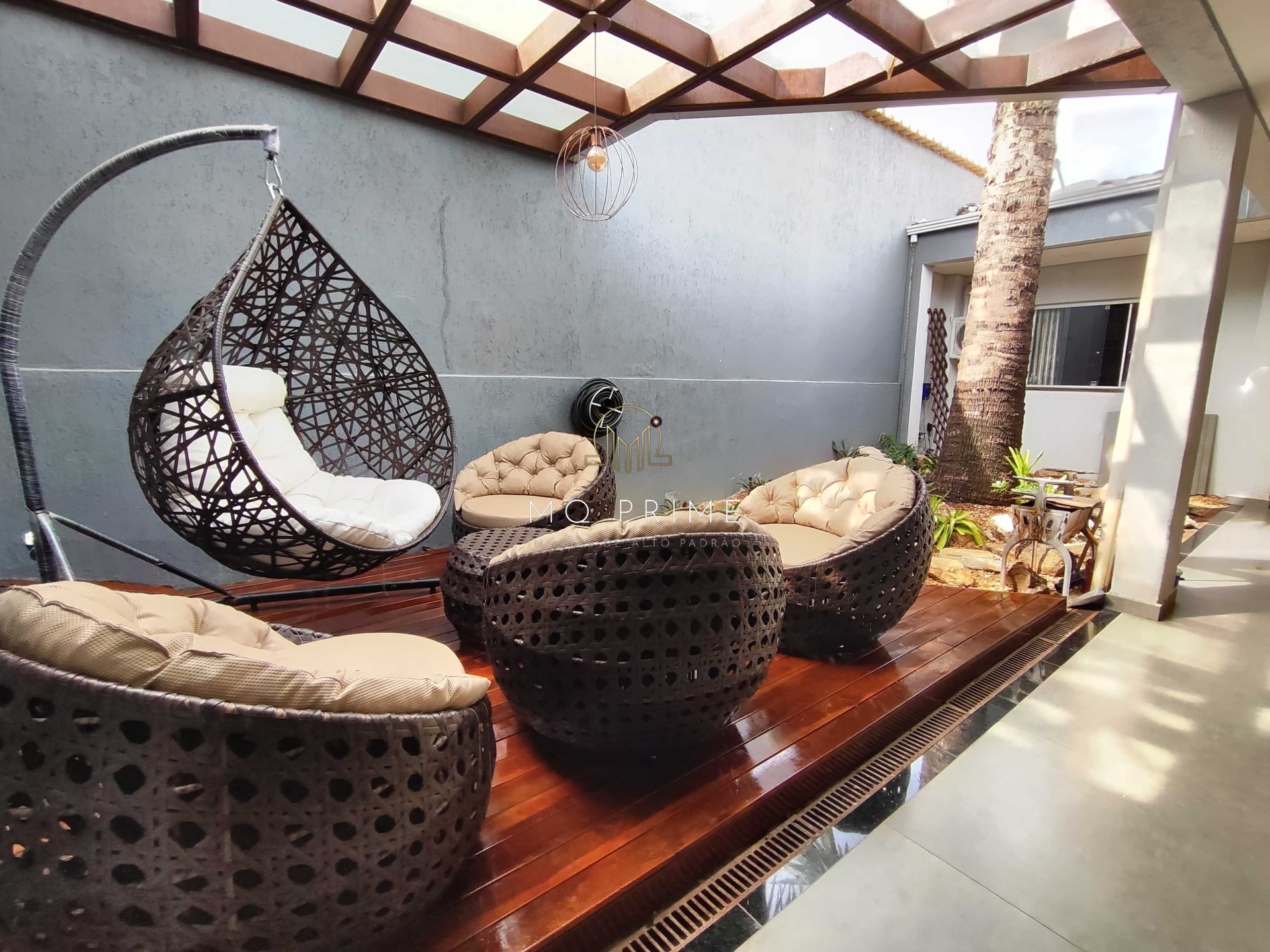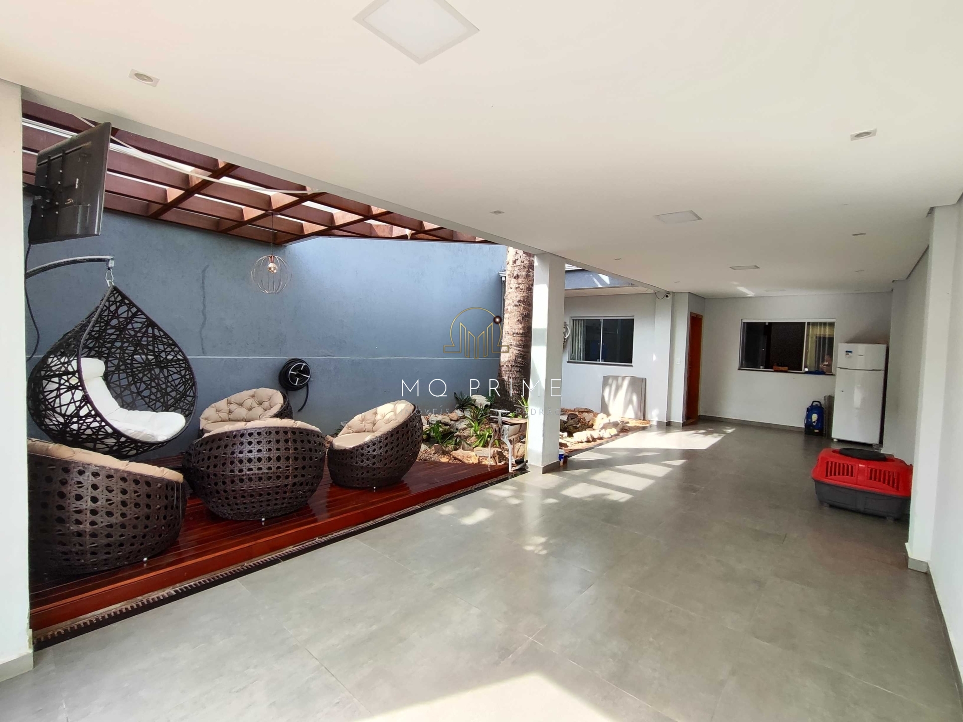 •A entrada do imóvel conta com um espaço incrível para você receber seus amigos e familiares, um deck e um lago ornamental de carpas.