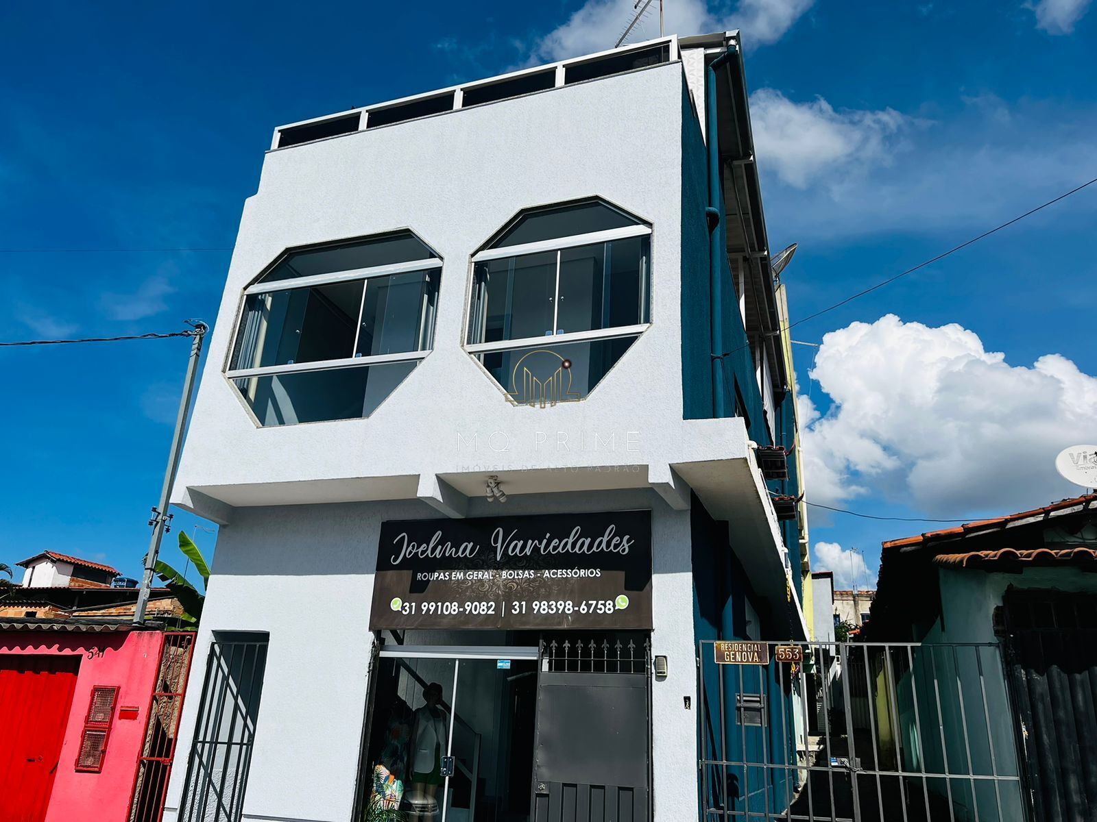 Segundo Andar: Sala de estar, quarto grande e arejado, banheiro com box e pia de vidro temperado, área externa coberta.